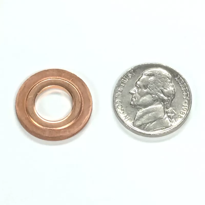 This is an original equipment GM part. This is the gasket that seals the injector nozzle tip from the combustion chamber.