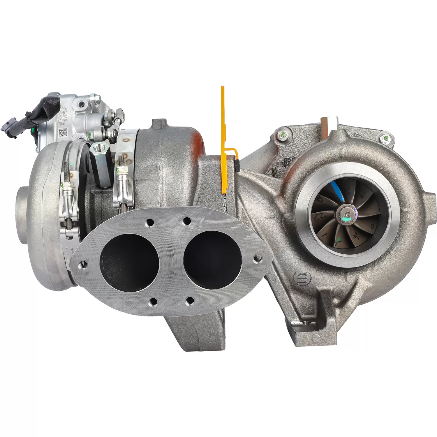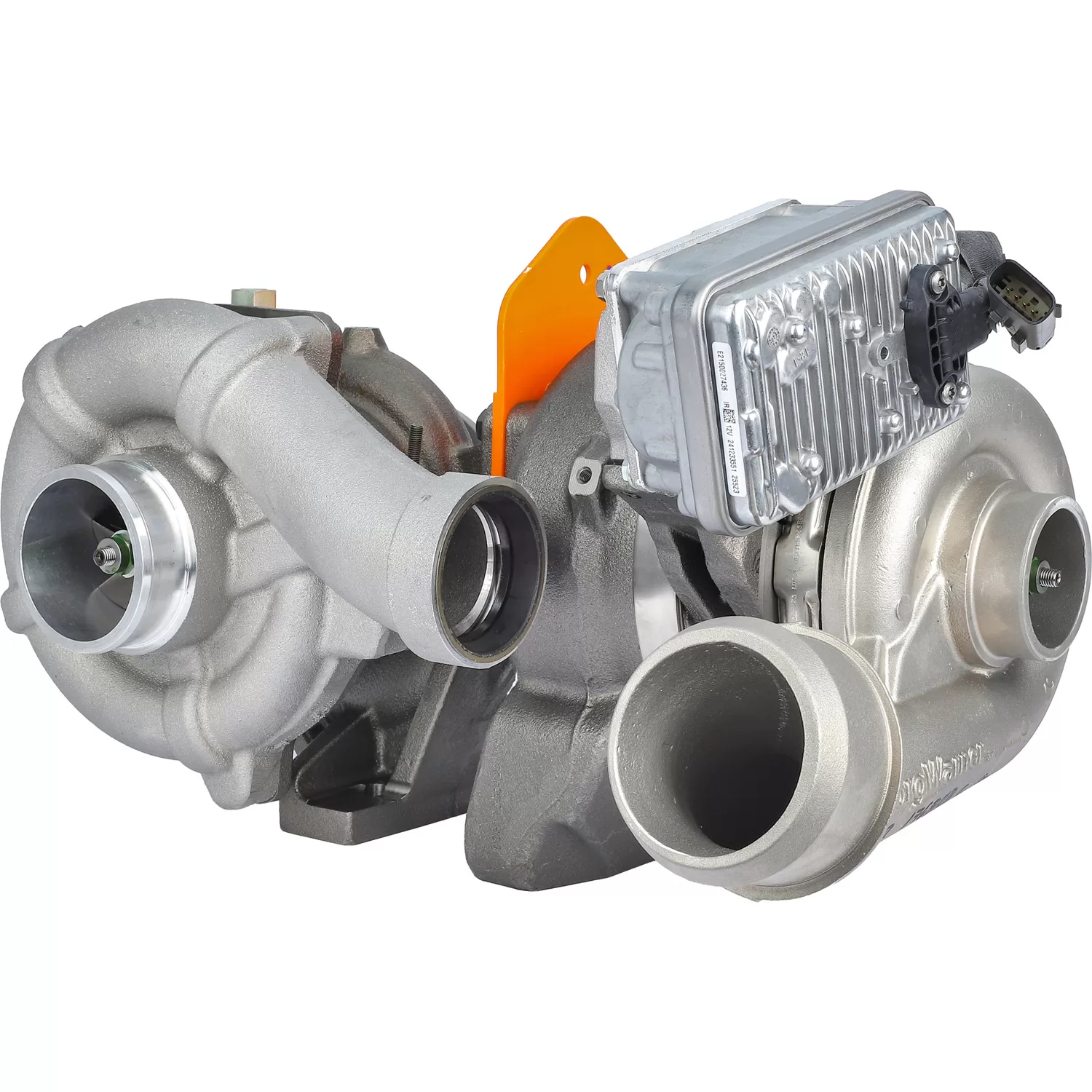 BorgWarner part number 479514 is a remanufactured complete turbocharger assembly that includes both sides, the high pressure turbo, the low pressure turbo, and the actuator for 2008-2010 Ford trucks with 6.4L Power Stroke diesel engines.